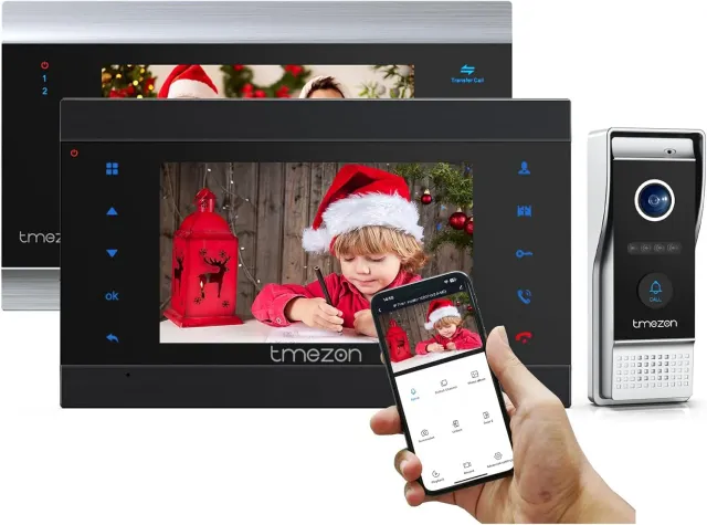 TMEZON Videoportero WiFi Sistema de intercomunicación,2 Monitor 1080P