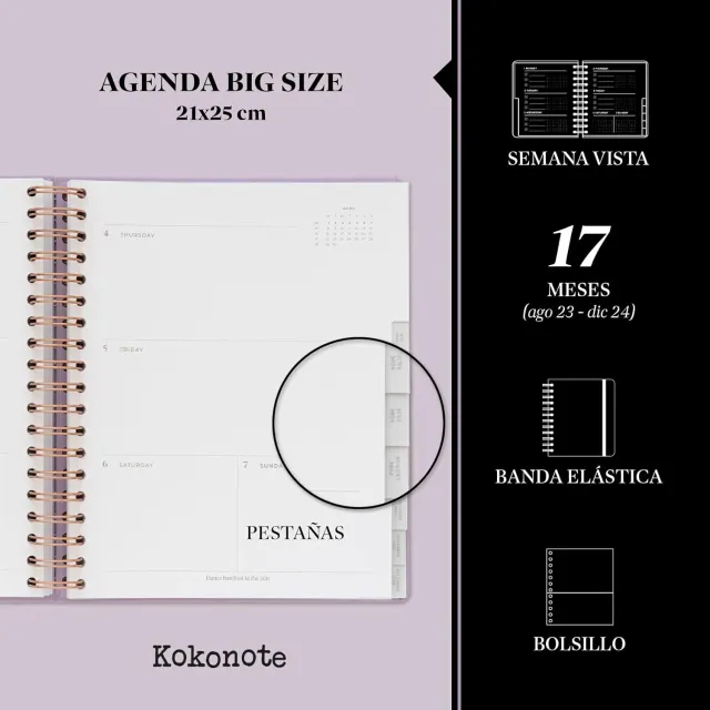 Kokonote Agenda 2024 semana vista Lilac Sunset